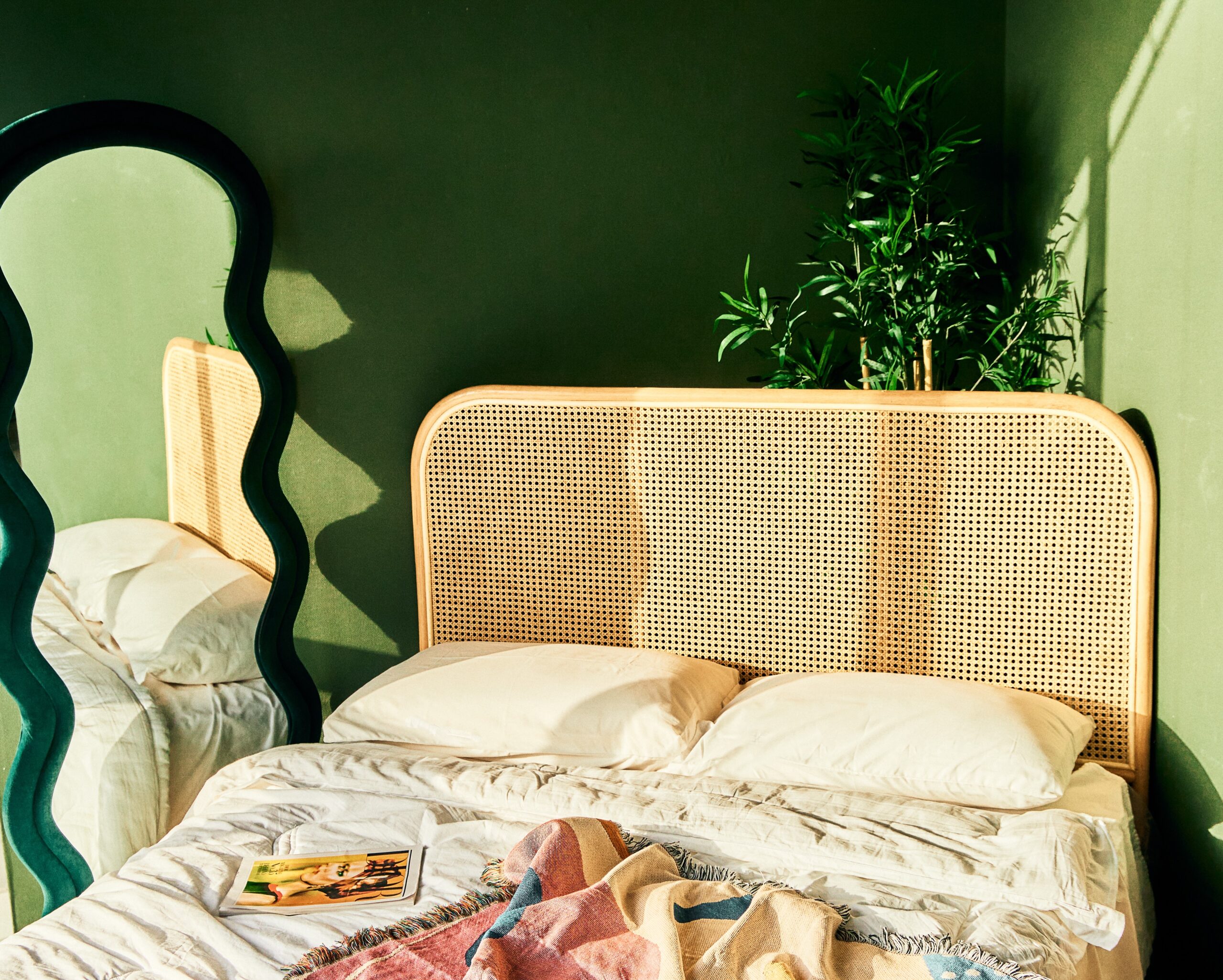 Crafted from durable natural rattan, this headboard features handwoven patterns that highlight the Moroccan craftsmanship.