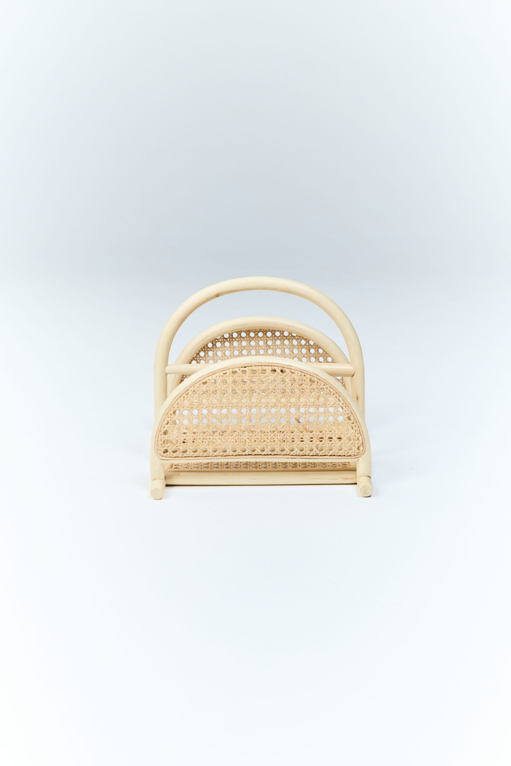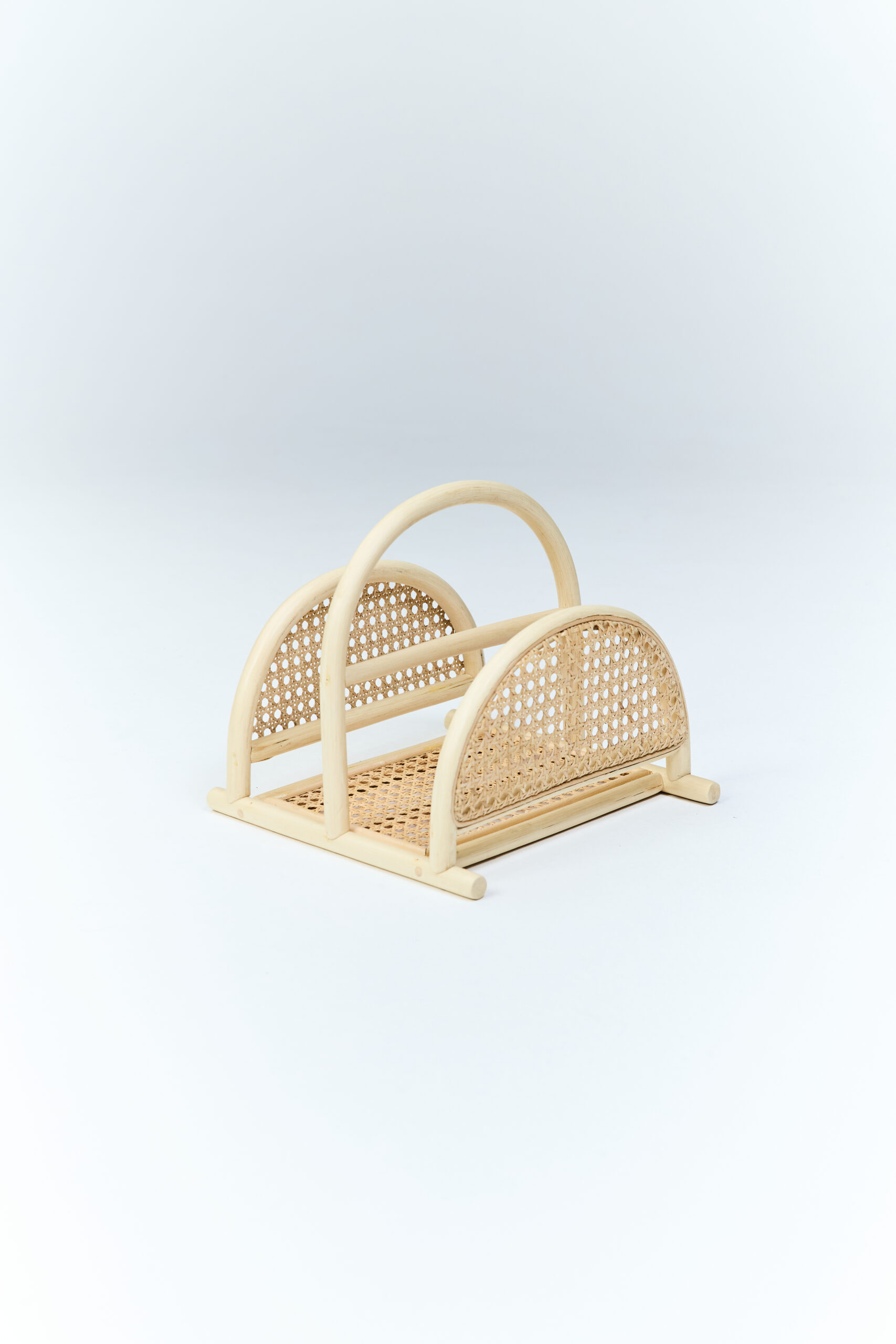 Crafted from durable rattan wood, known for its strength and distinctive woven texture, the magazine rack exudes a rustic charm with a clean finish that complements a variety of interior styles.