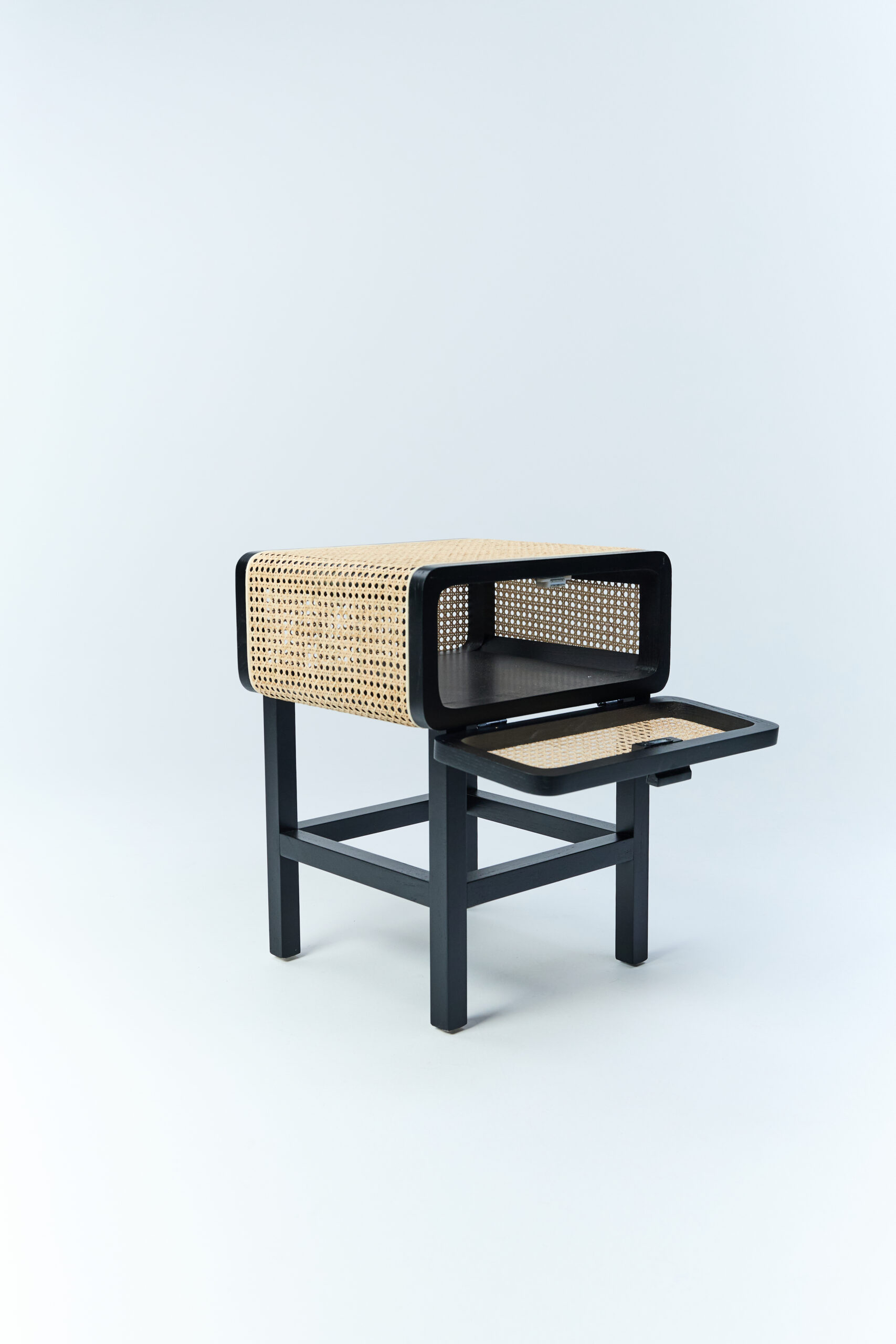 Perfectly blending modern design with sustainable materials, this side table is a striking addition to any living space or bedroom.